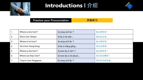 6. Where are they from? tā men lái zì xīn jiā pō 。 他们来自哪里?