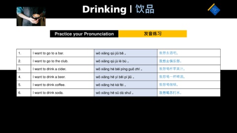 6. I want to drink soda. wǒ xiǎnɡ hē sū dá shuǐ 。 我想喝苏打水。