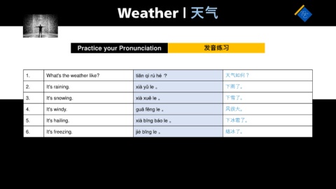 1. What's the weather like? tiān qì rú hé ? 天气如何?